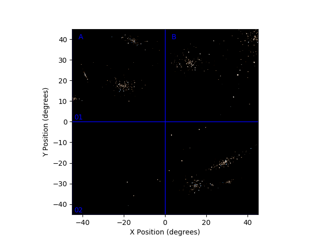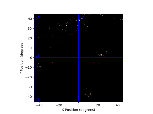 Here is a list of the flashes detected, with their rough positions and number of photons.