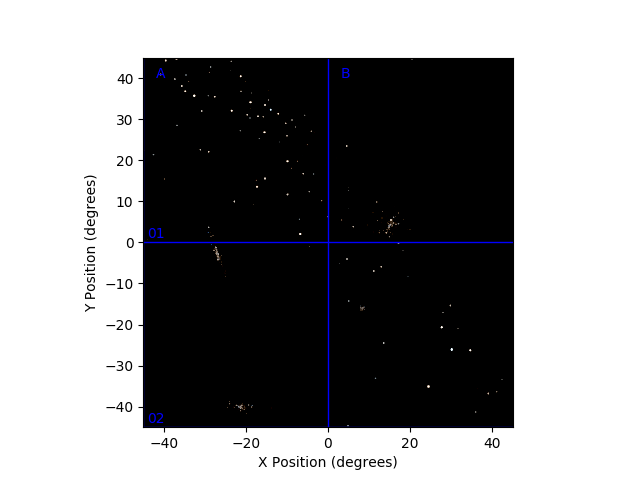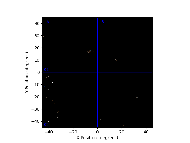 Here is a list of the flashes detected, with their rough positions and number of photons.
