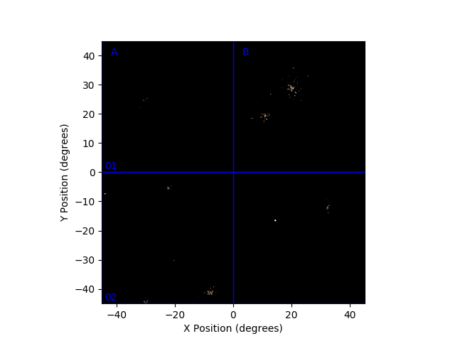 Here is a list of the flashes detected, with their rough positions and number of photons.