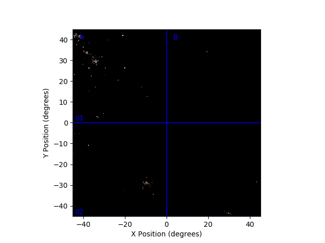 Here is a list of the flashes detected, with their rough positions and number of photons.