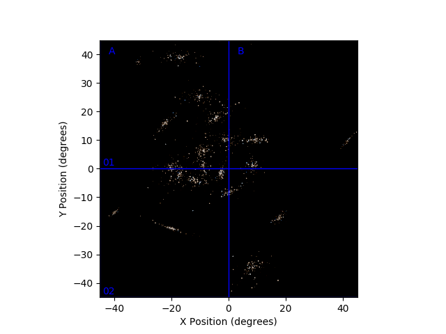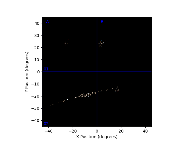 Here is a list of the flashes detected, with their rough positions and number of photons.