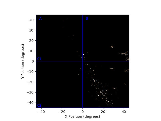 Here is a list of the flashes detected, with their rough positions and number of photons.